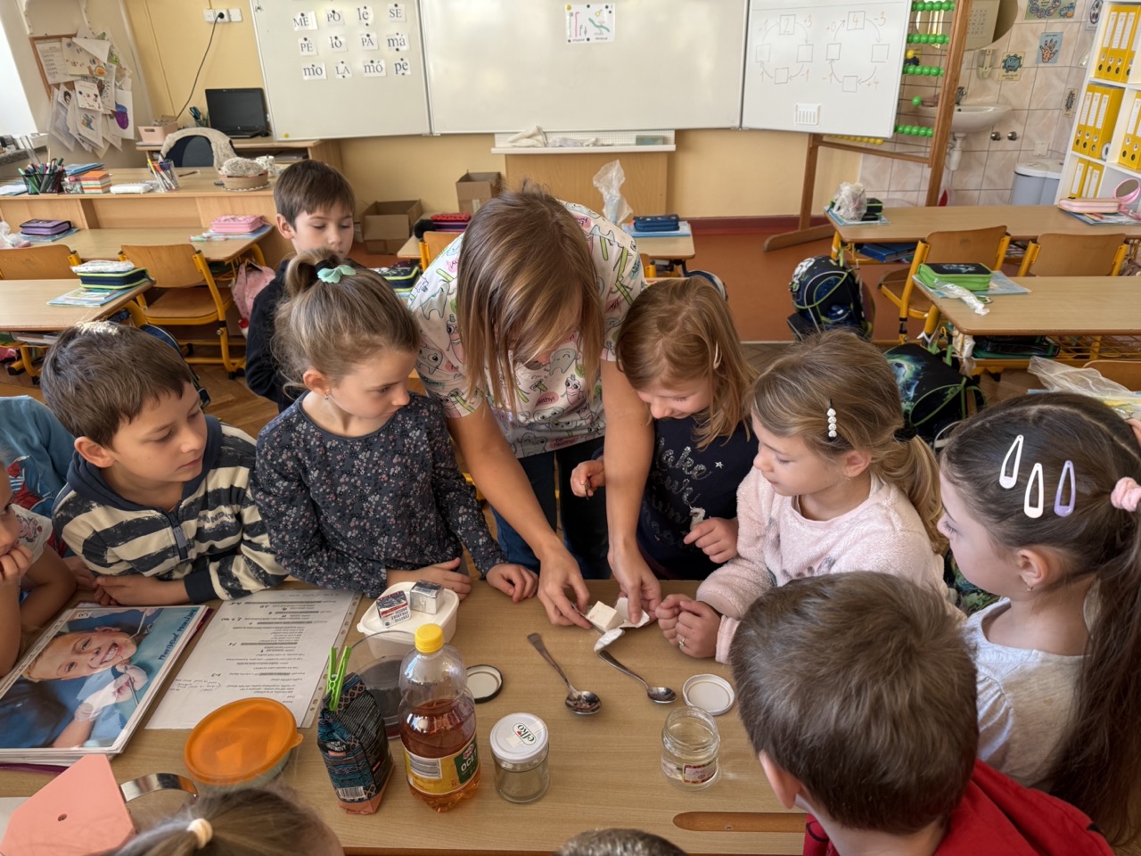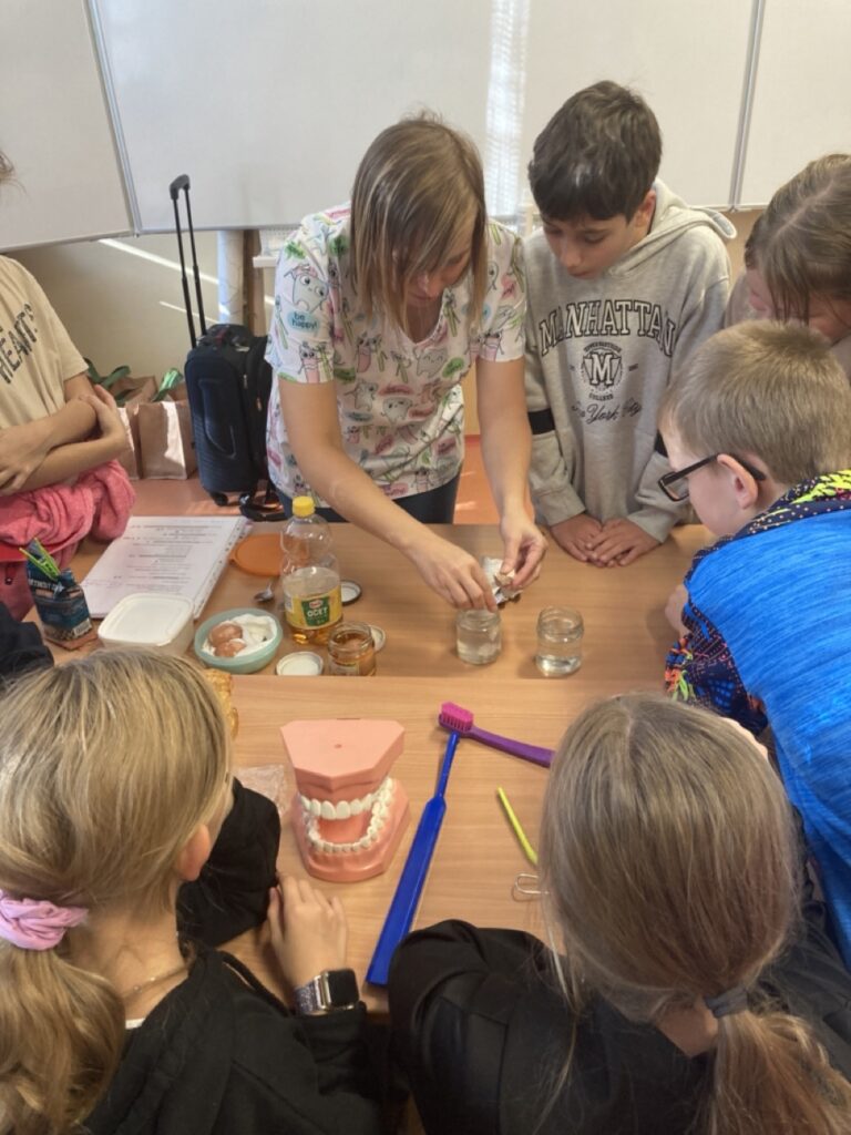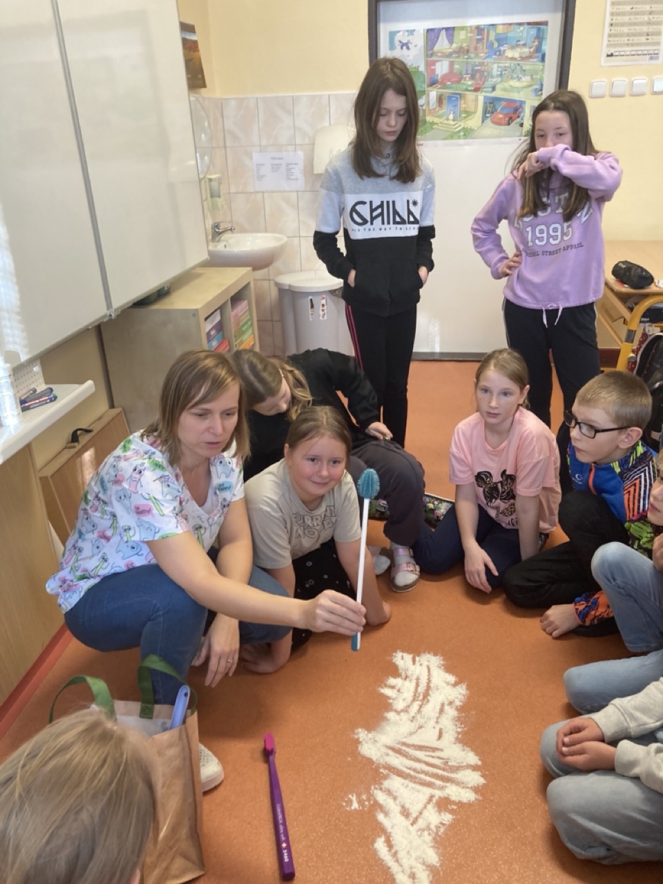 Děti se během programu vyzkoušely, který tvar zubního kartáčku je nejlepší, jakým způsobem nám mohou v ústech škodit sladké i kyselé nápoje a potraviny, kolik cukru obsahují různé druhy potravin a nápojů a díky „kouzelné fialové tabletce“ objevily na svých vlastních zubech nedokonale vyčištěná místa.