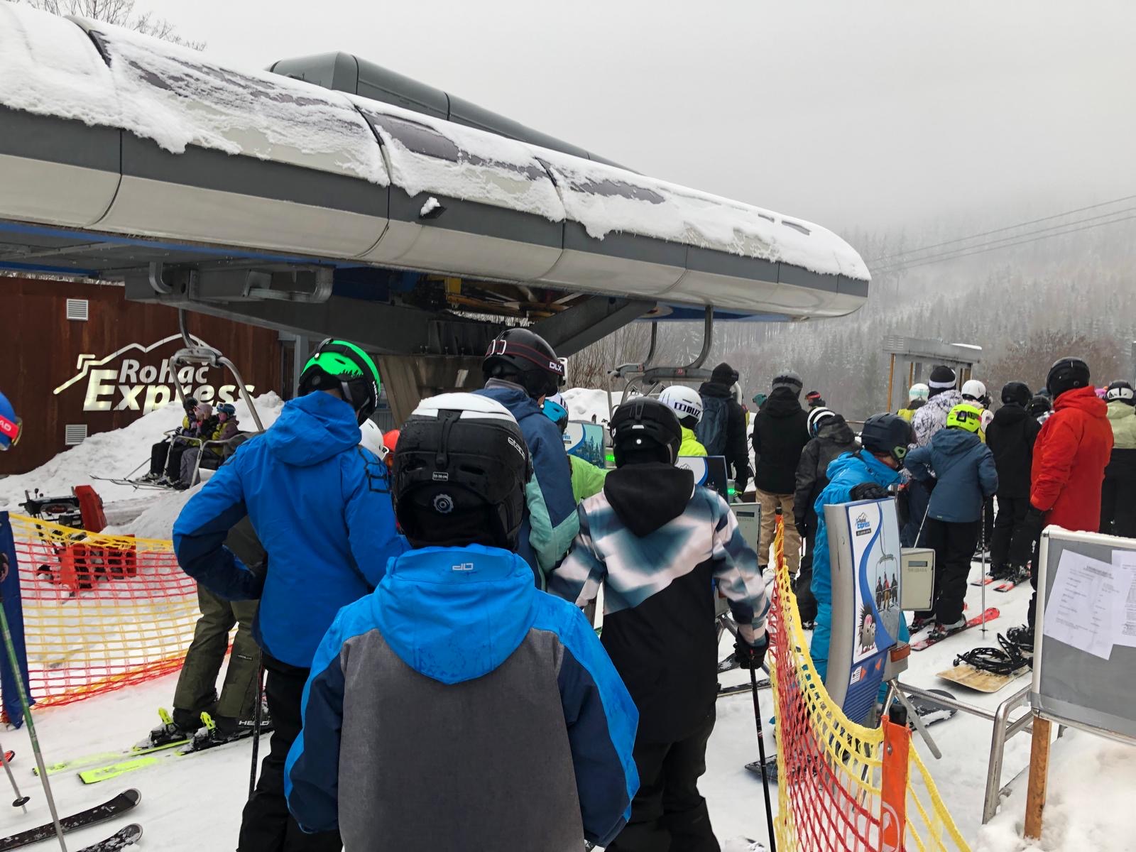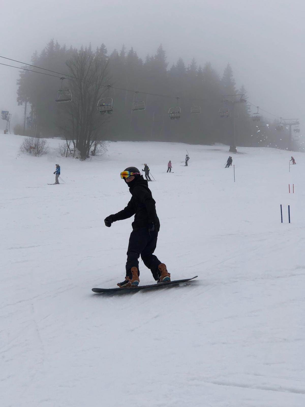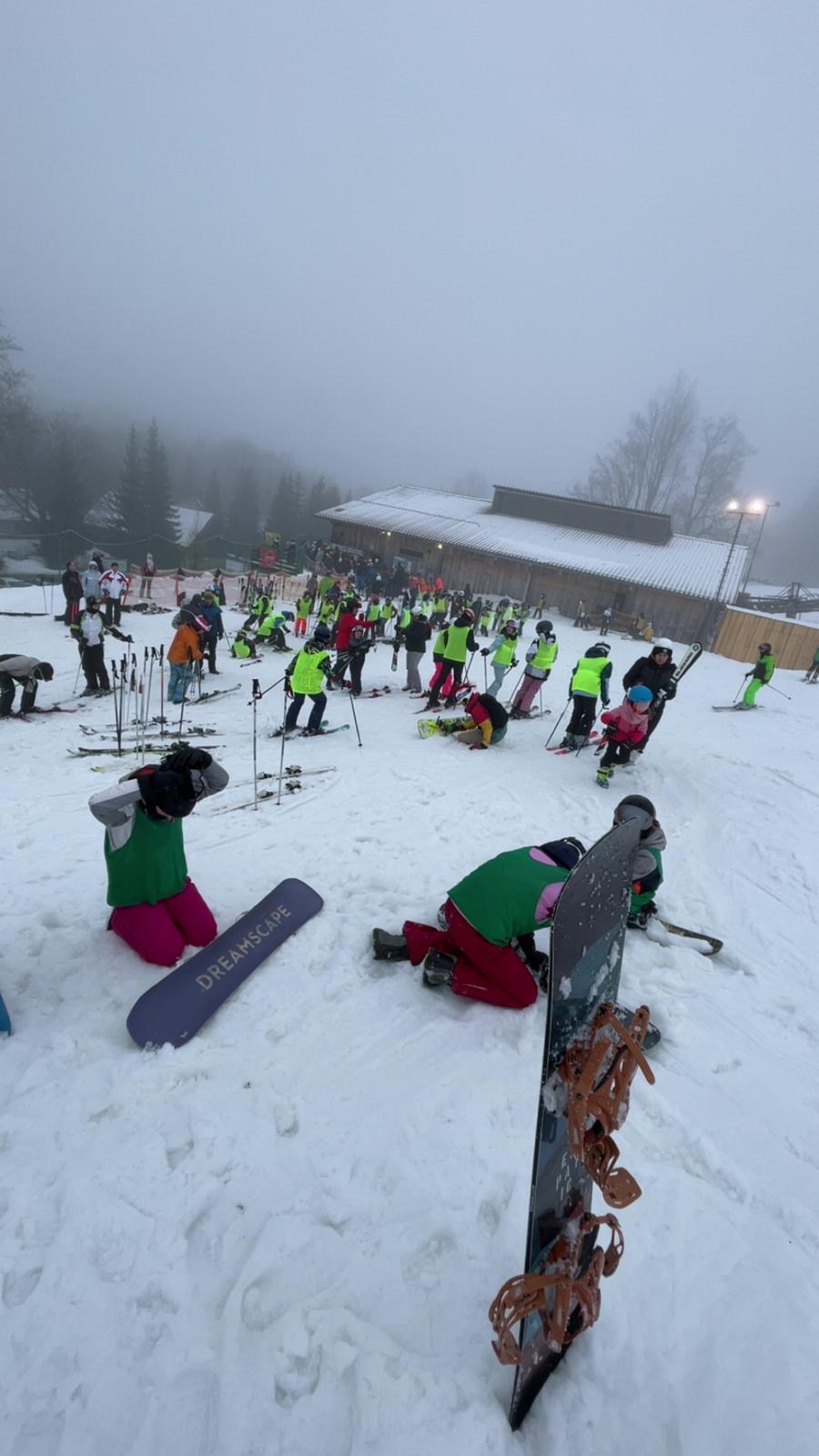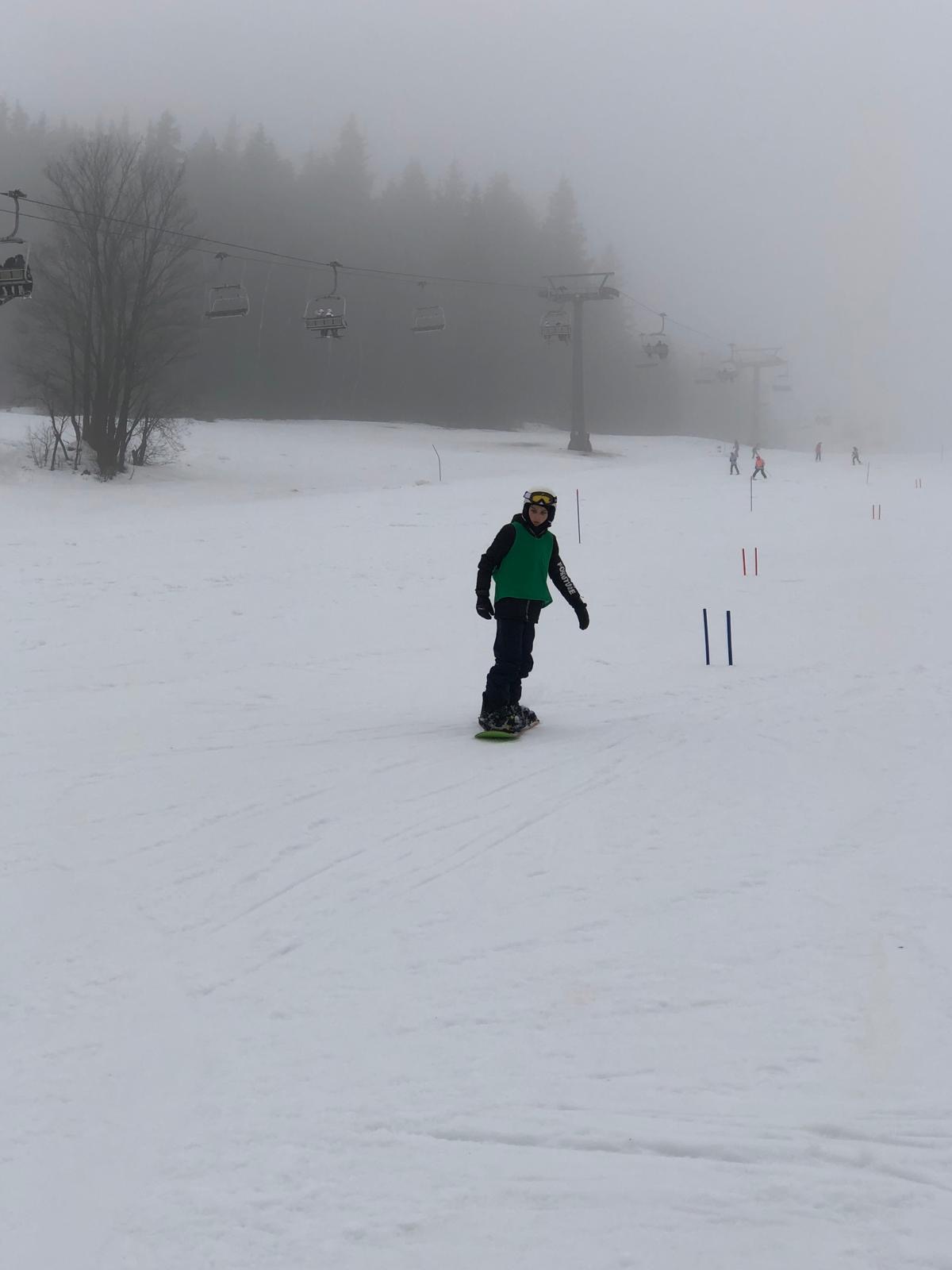 Na svahu jsme byli rozděleni do skupin: lyžaři začátečníci, mírně pokročilí, pokročilí a snowboardisté, které vedl Matěj Švan, a snowboardisté začátečníci pod vedením paní učitelky Švanové.