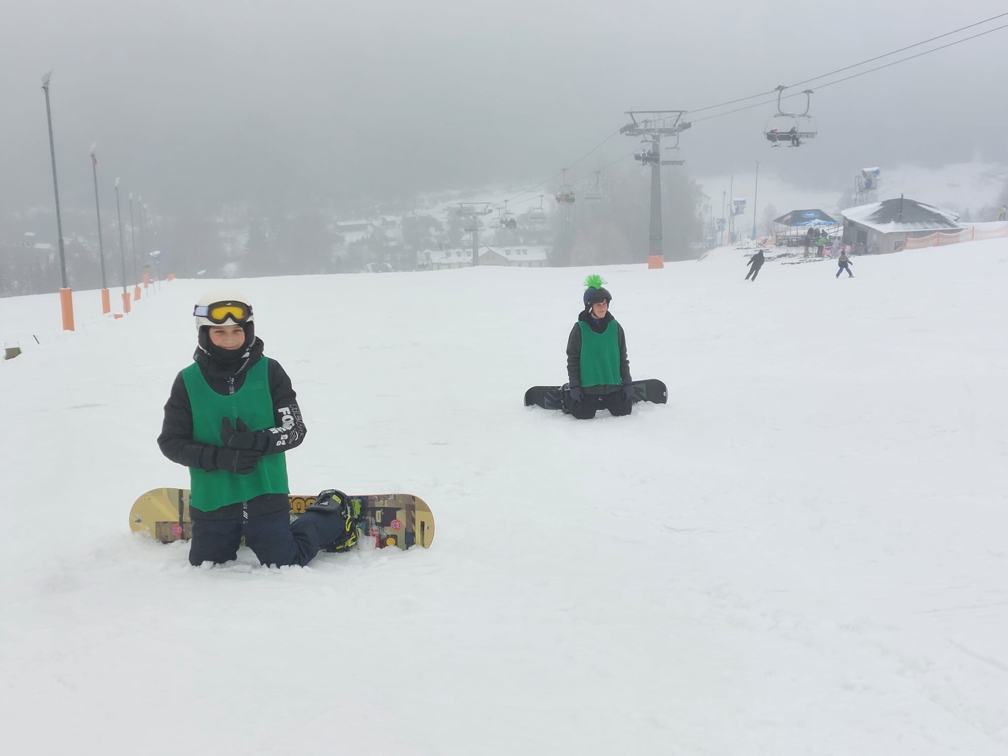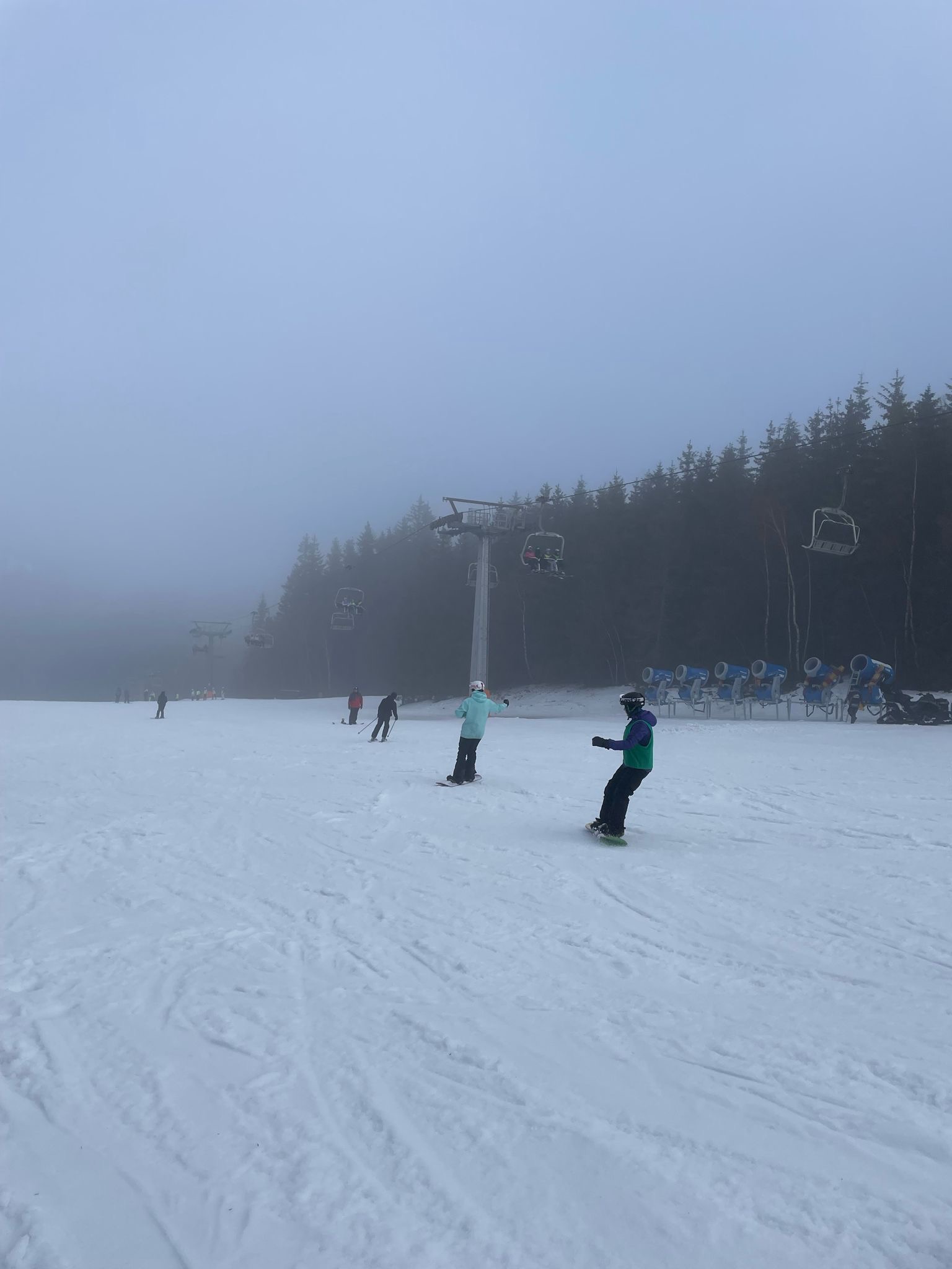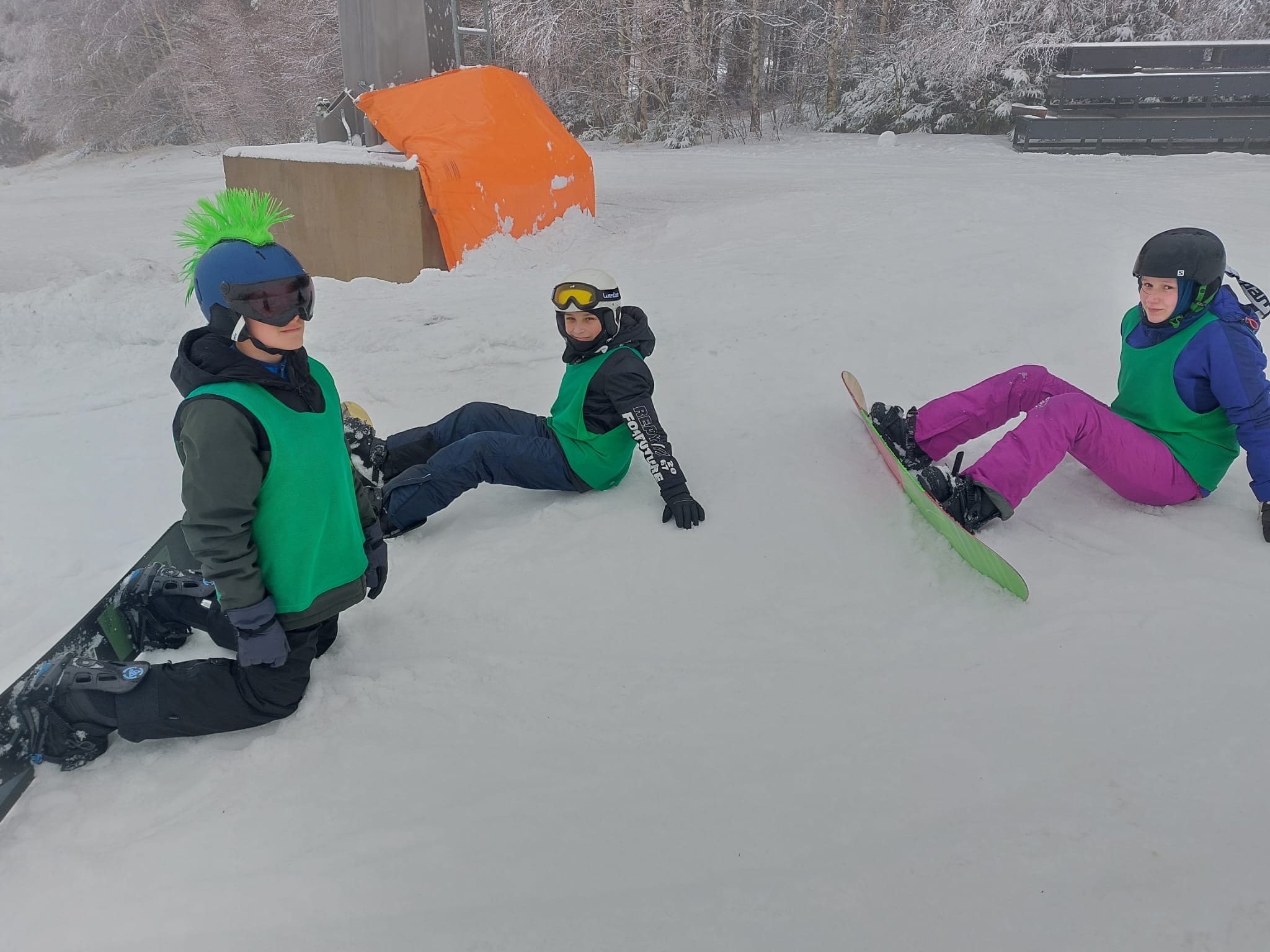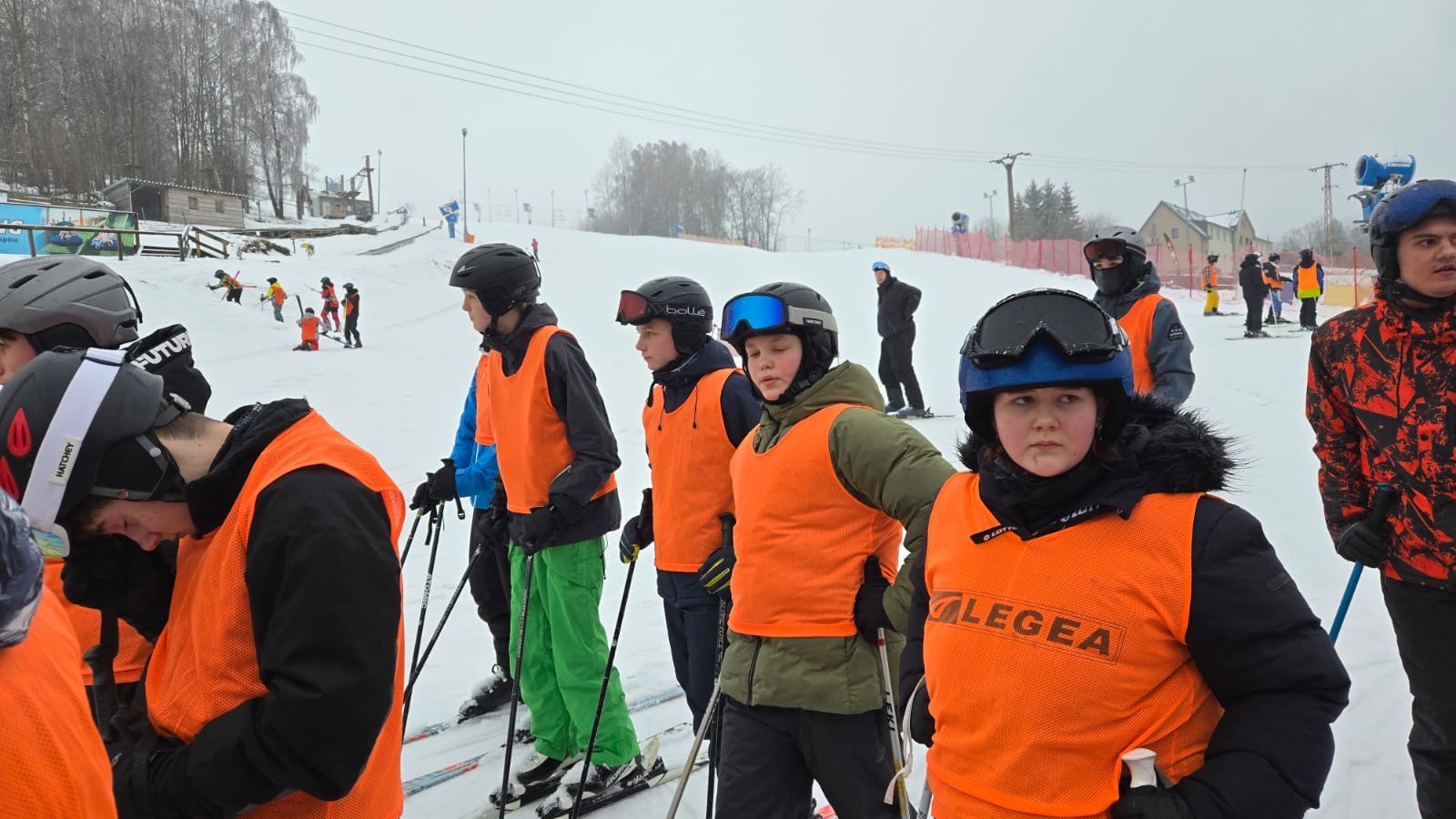 Na svahu jsme byli rozděleni do skupin: lyžaři začátečníci, mírně pokročilí, pokročilí a snowboardisté, které vedl Matěj Švan, a snowboardisté začátečníci pod vedením paní učitelky Švanové.
