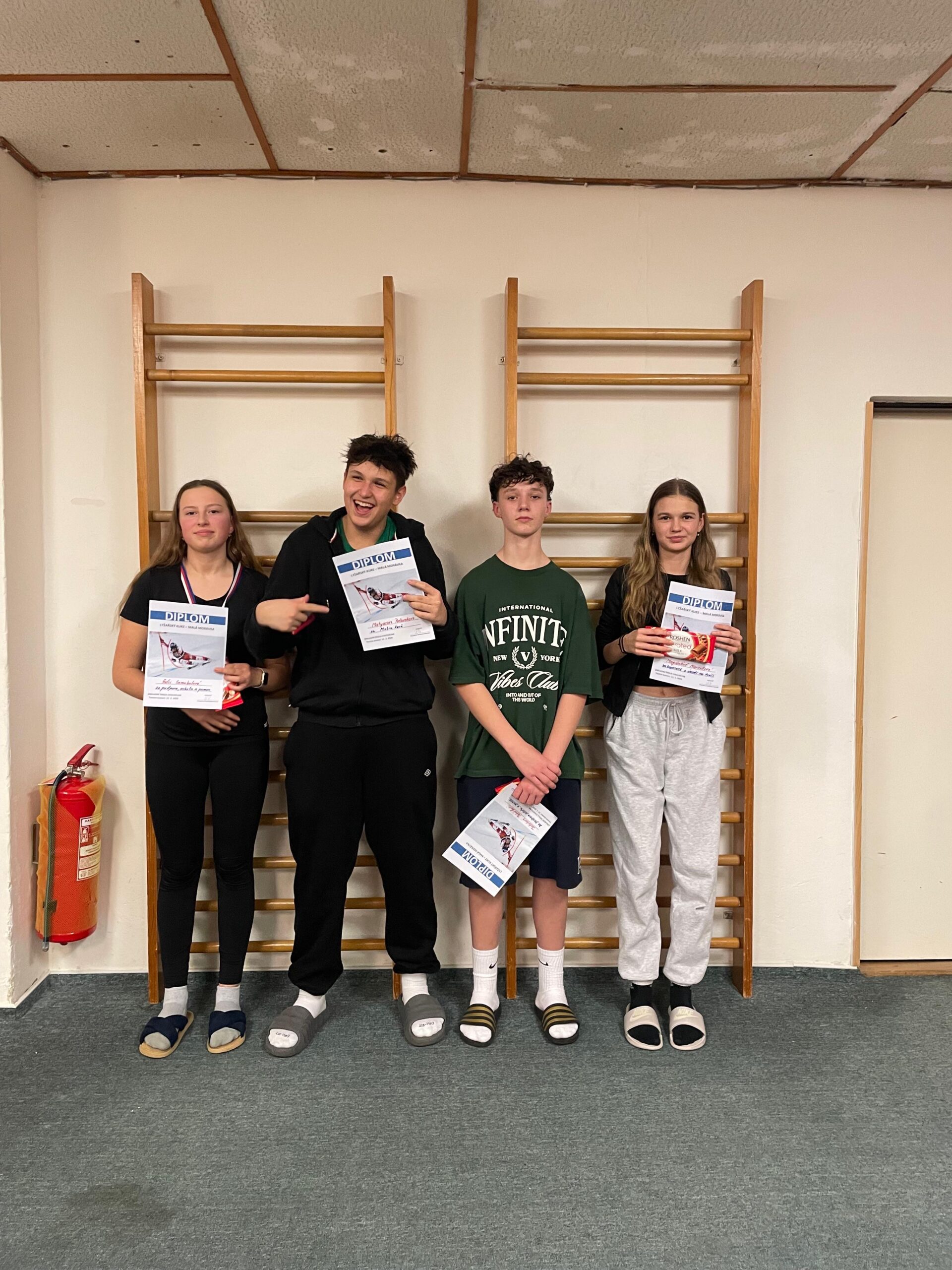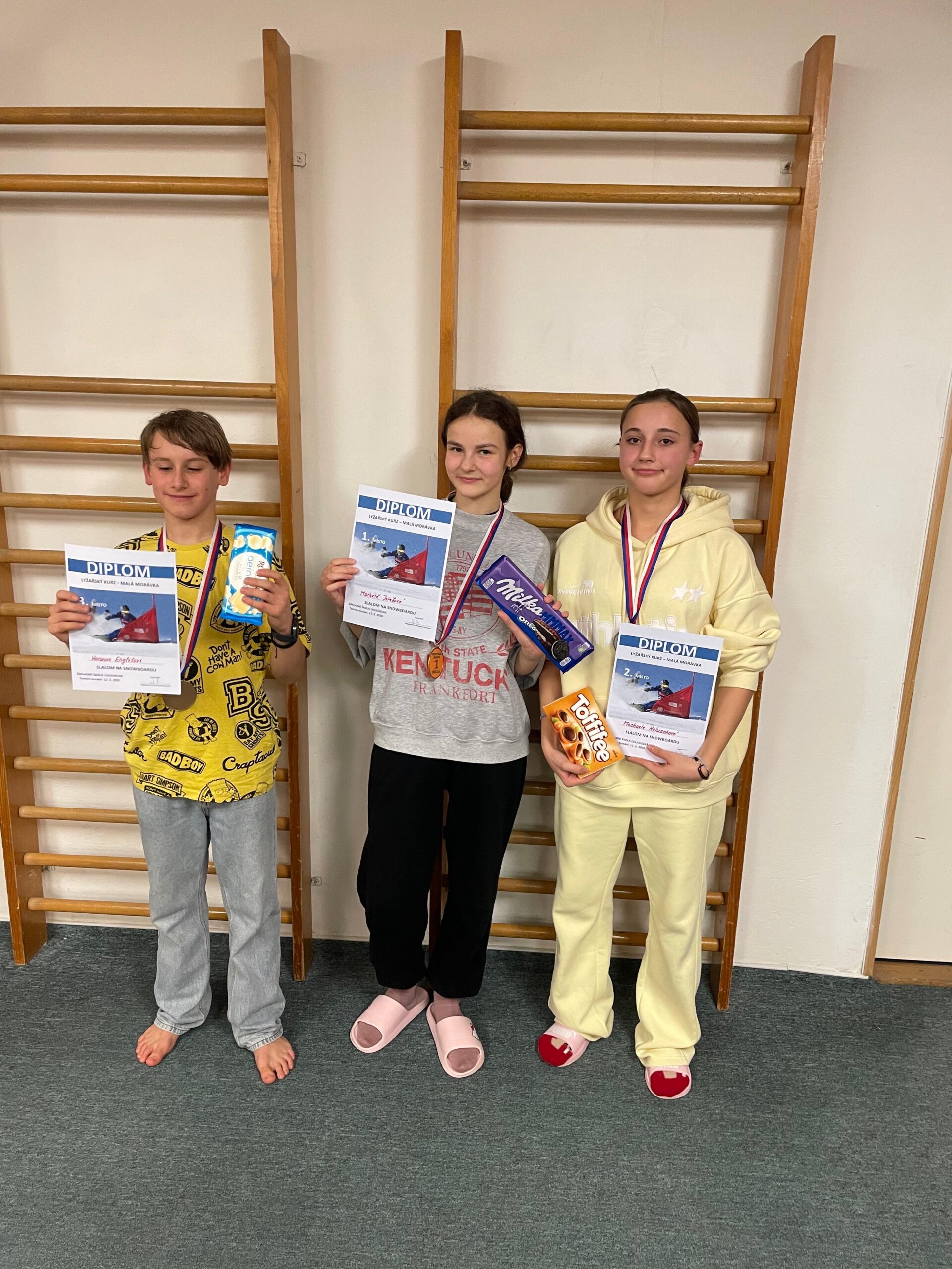 Lyžovali jsme vždy ráno a odpoledne a večer pro nás paní učitelky měly nachystány nejrůznější hry. Ti nejlepší vždy byli odměněni různými cenami.