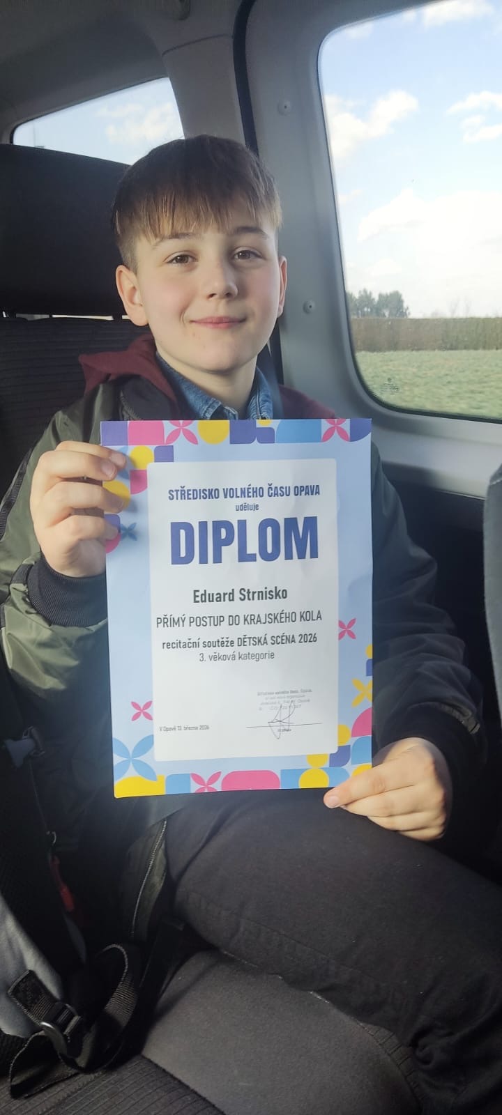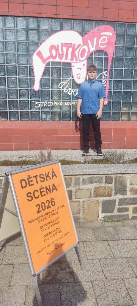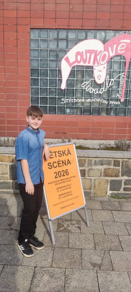 V pátek 13. března 2026 proběhlo v Loutkovém divadle v Opavě okresní kolo recitační soutěže. Naši školu reprezentoval Eduard Strnisko, žák 7. B třídy.
