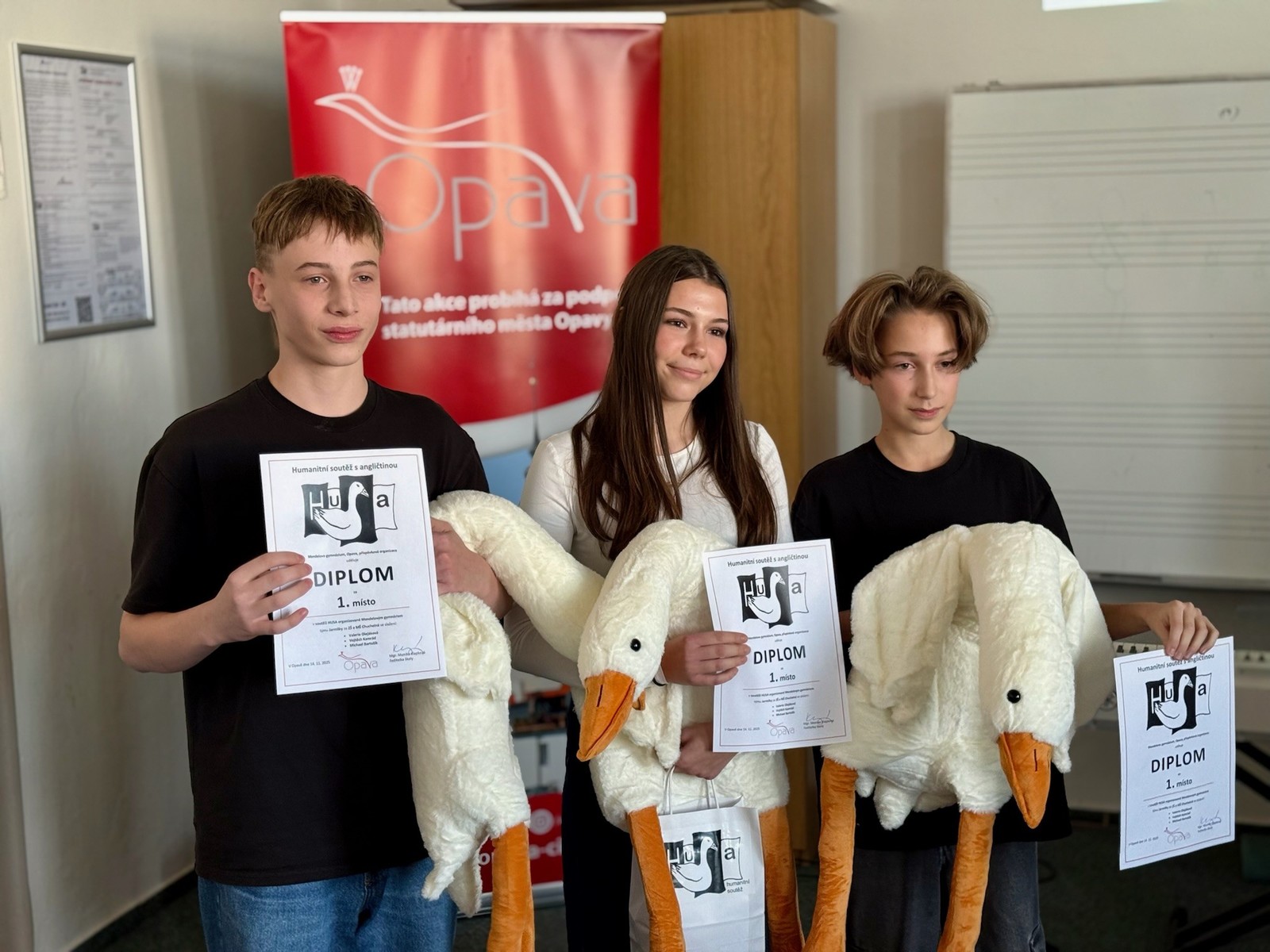 V pátek 14. 11. se šest našich deváťáků zúčastnilo Humanitní soutěže s angličtinou (= HuSA) na Mendelově gymnáziu v Opavě – s nevídaným úspěchem!