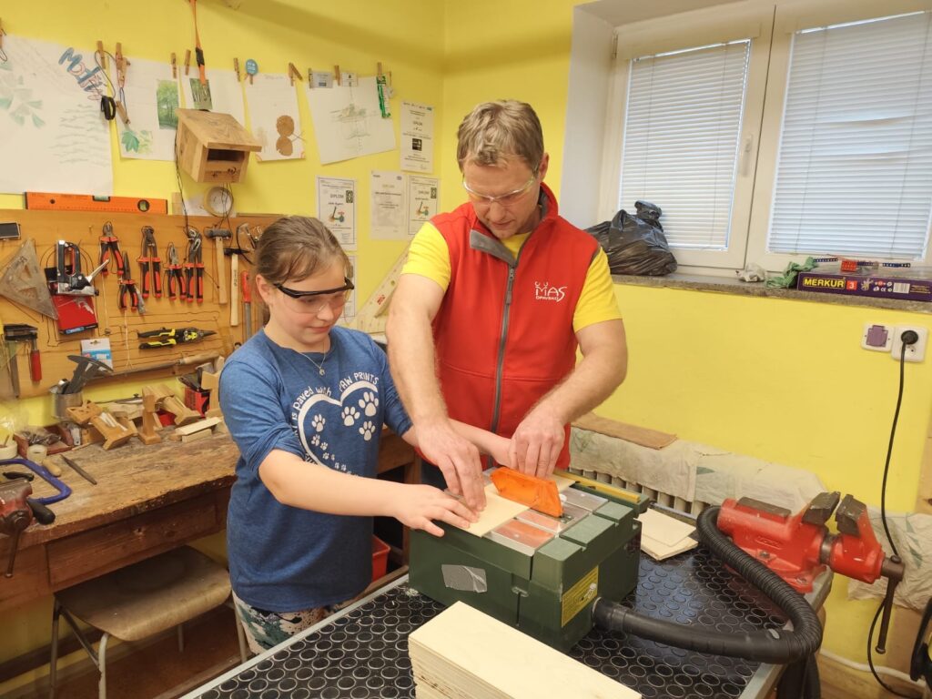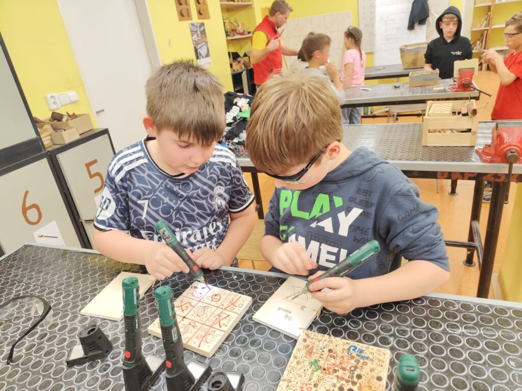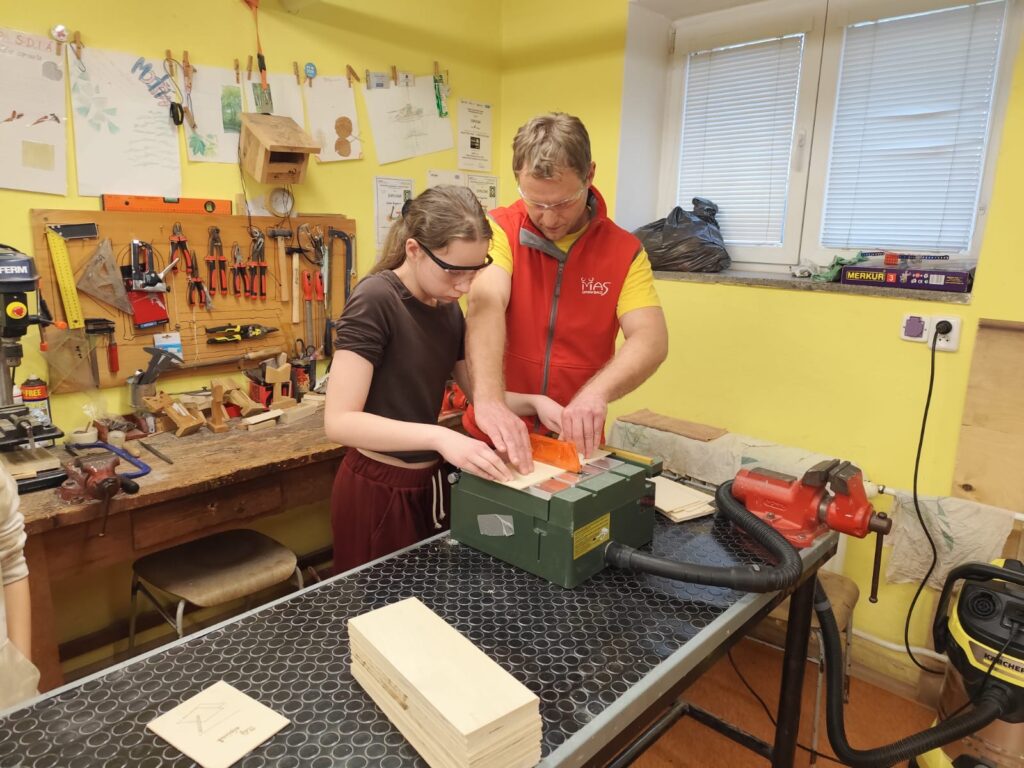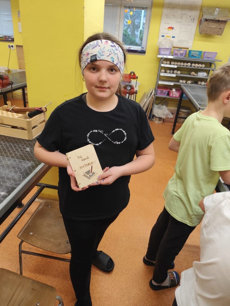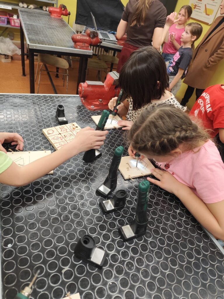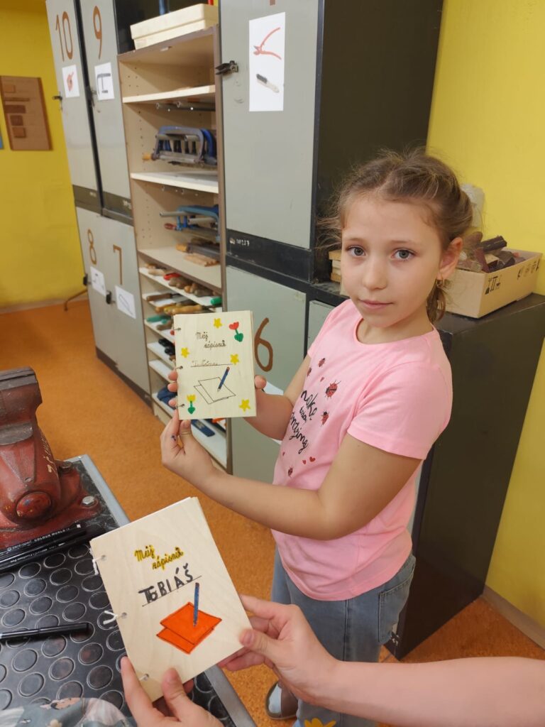 Vyráběly si deníček – při tom si zkusily řezat na pile, práci se sloupovou vrtačkou, pájkou…. Odnesly si domů krásné a vlastnoručně vytvořené výrobky!