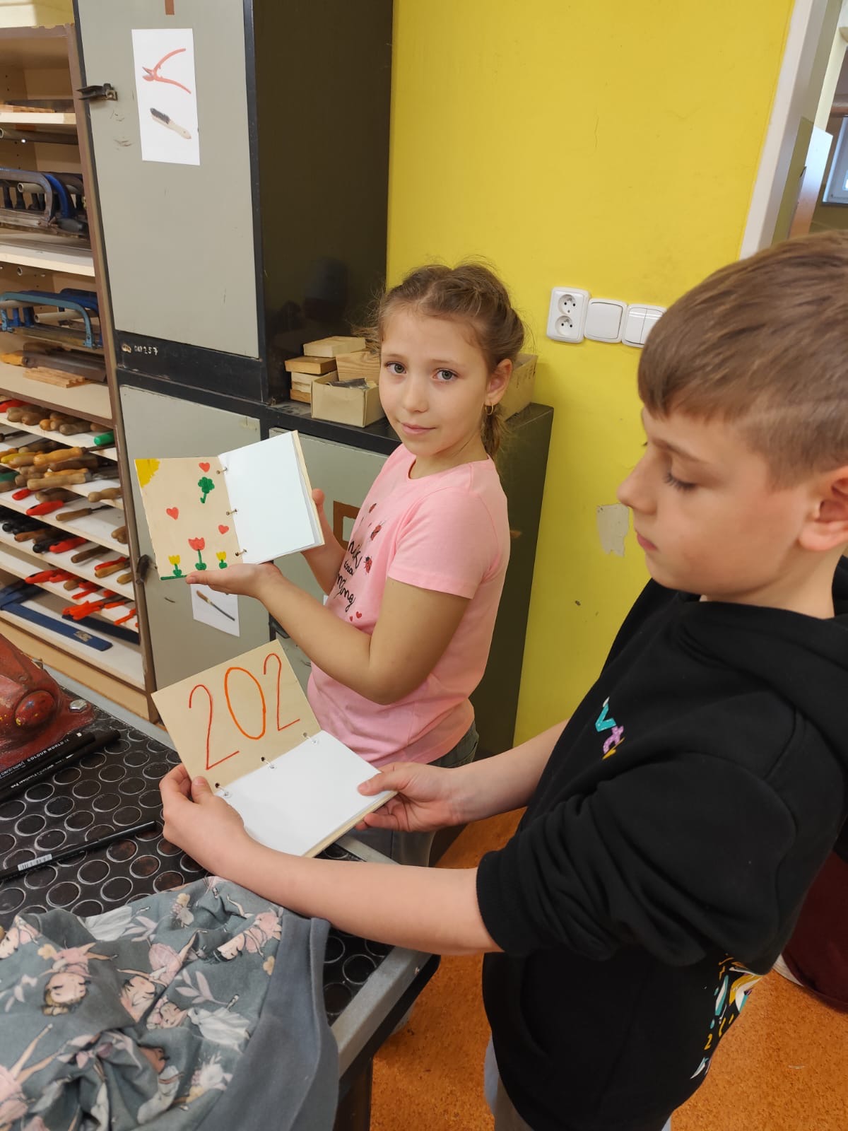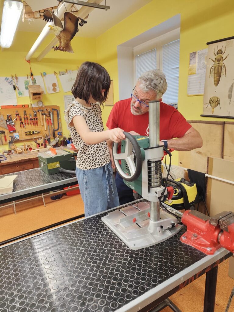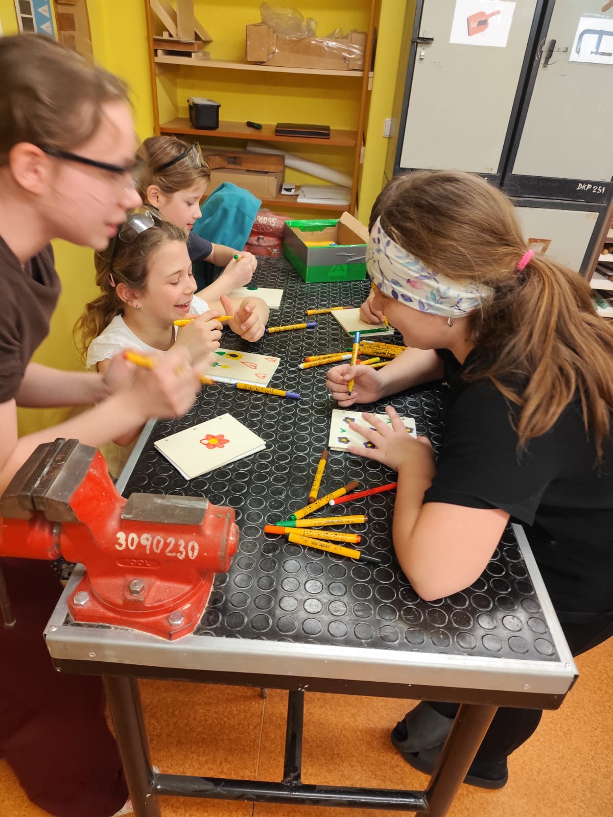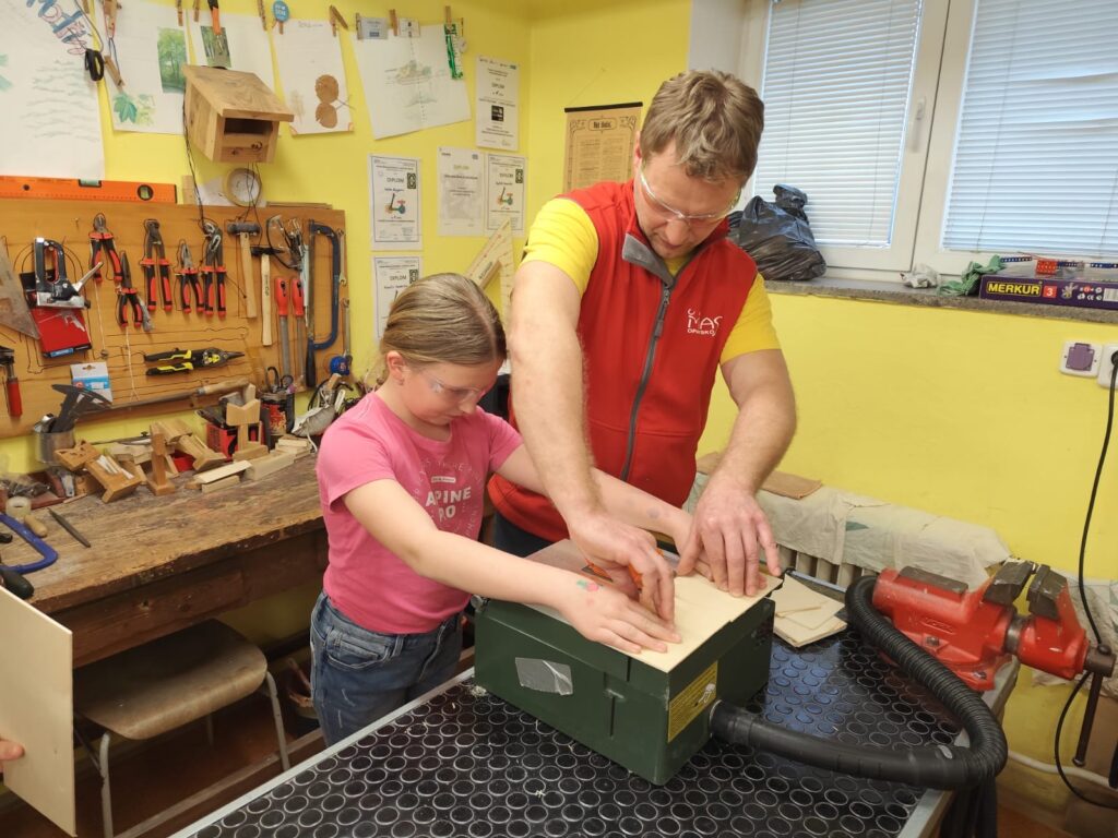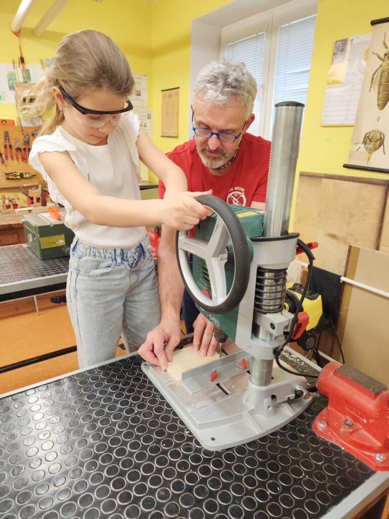 Vyráběly si deníček – při tom si zkusily řezat na pile, práci se sloupovou vrtačkou, pájkou…. Odnesly si domů krásné a vlastnoručně vytvořené výrobky!