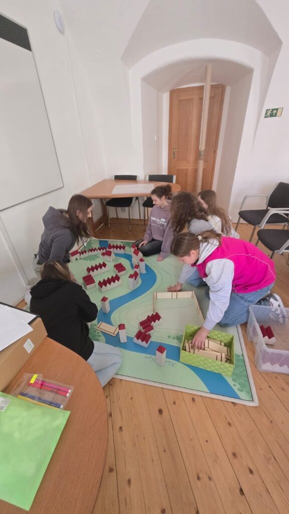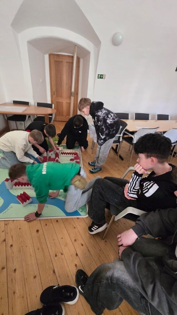 V další části programu žáci porovnávali historický plán města Hlučína se současnou podobou a hledali rozdíly i podobnosti. Vyzkoušeli si také praktickou aktivitu, při které stavěli vlastní model středověkého města.