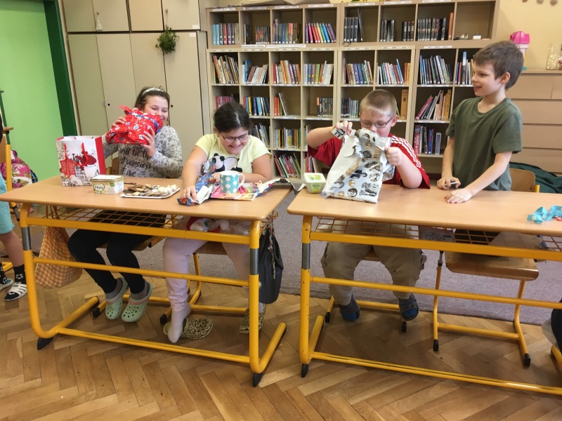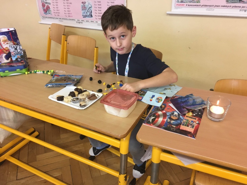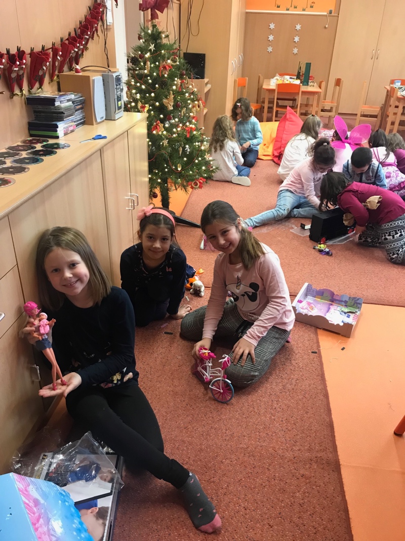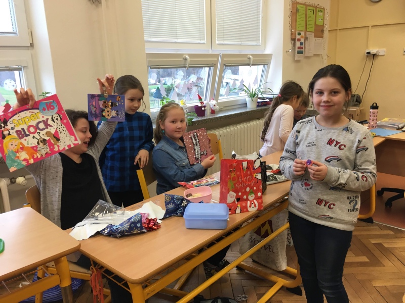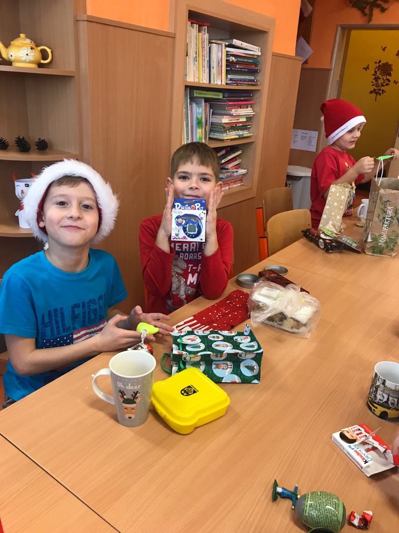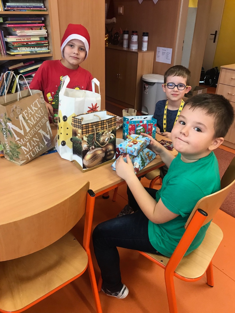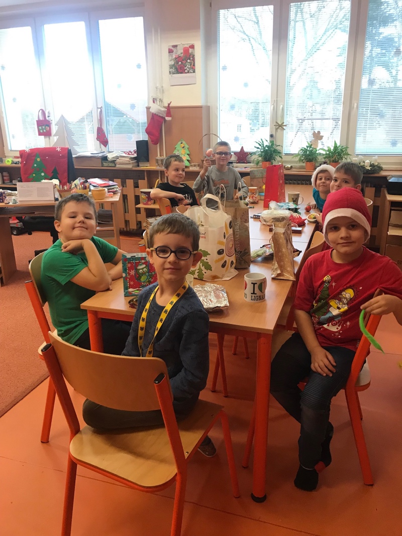 Chlapci a děvčata si mezi sebou vyměnili dárečky a mnoho dárků na ně čekalo pod stromečkem. Zazpívali jsme si koledy, povídali si o vánočních zvycích a ochutnávali jsme navzájem cukroví.