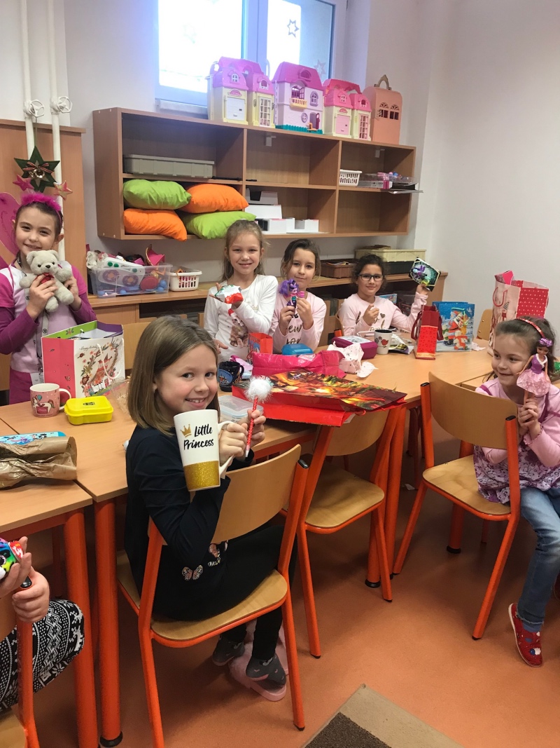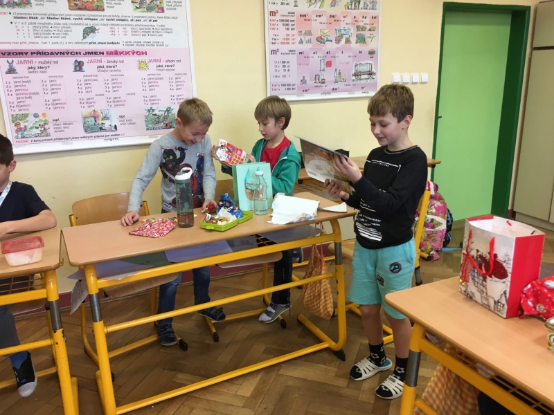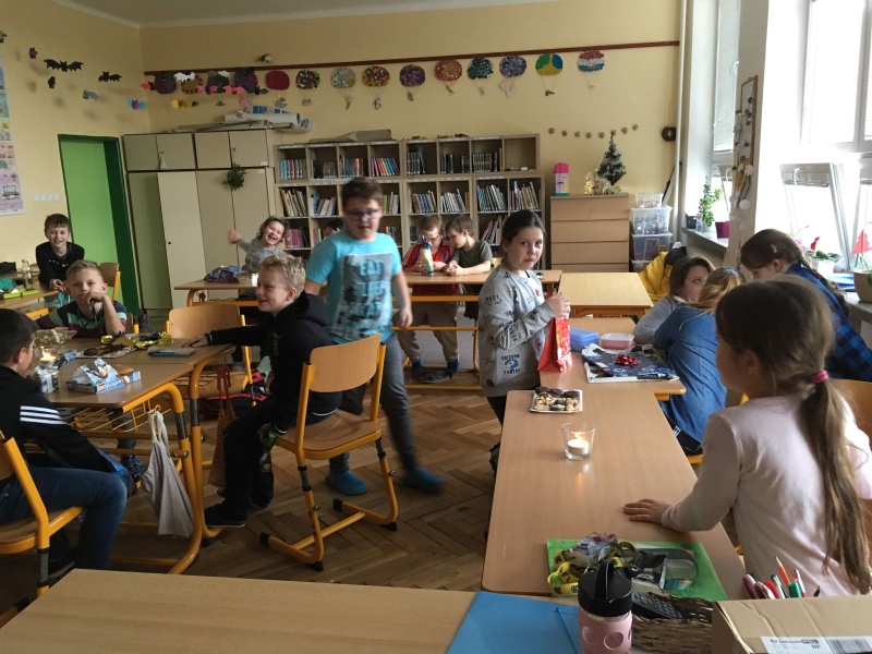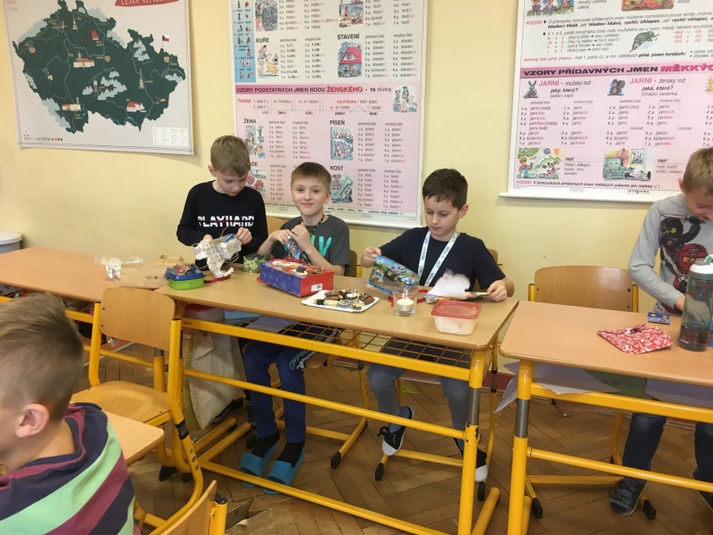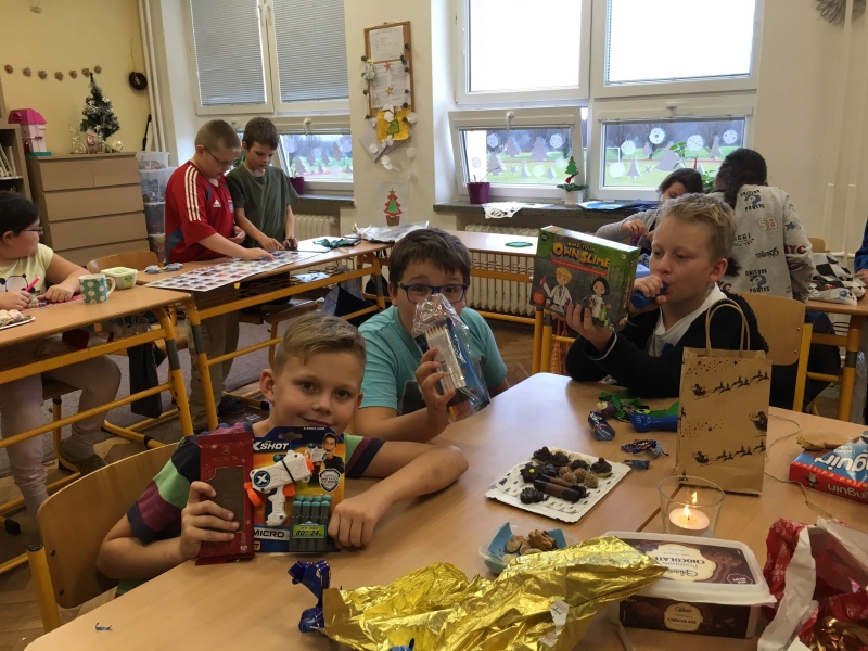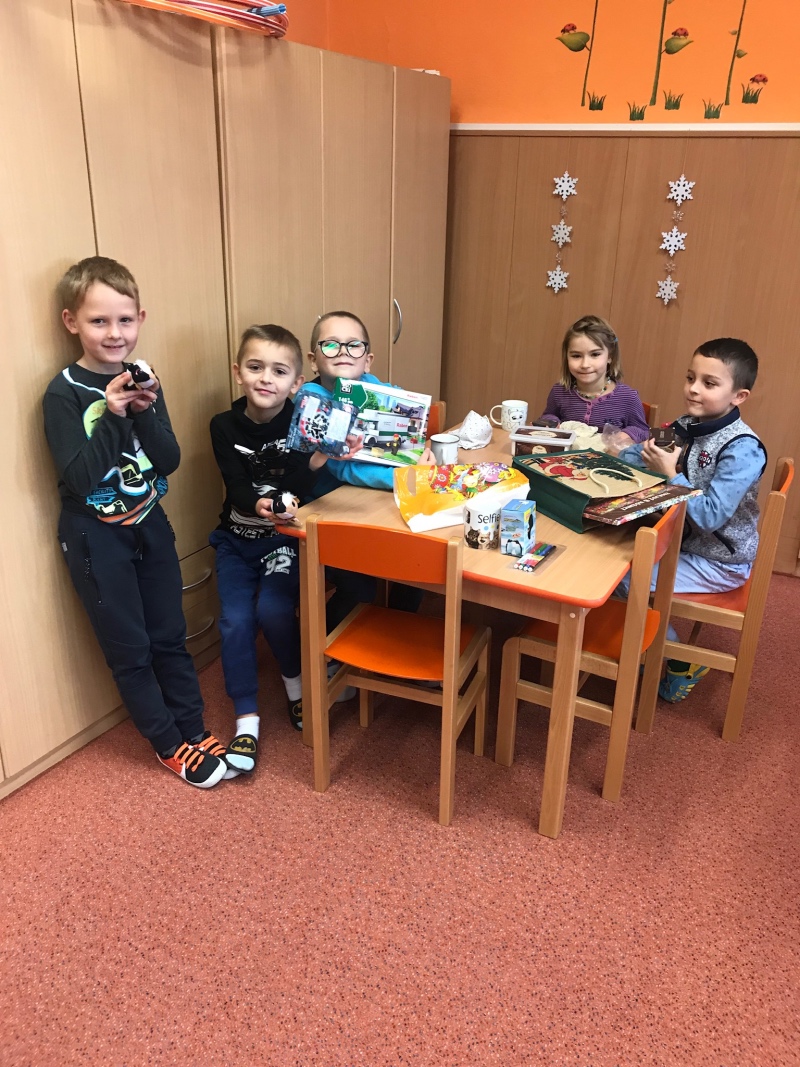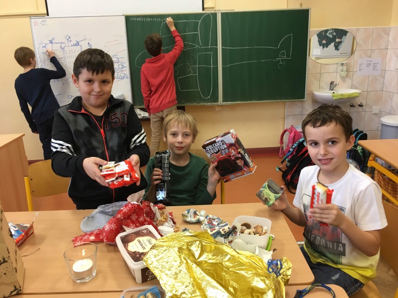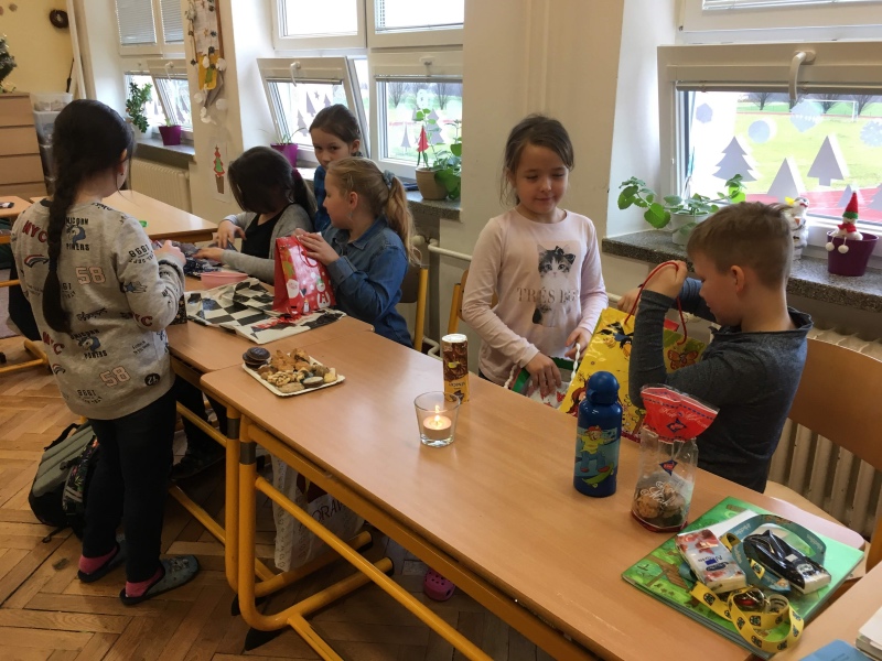 Chlapci a děvčata si mezi sebou vyměnili dárečky a mnoho dárků na ně čekalo pod stromečkem. Zazpívali jsme si koledy, povídali si o vánočních zvycích a ochutnávali jsme navzájem cukroví.