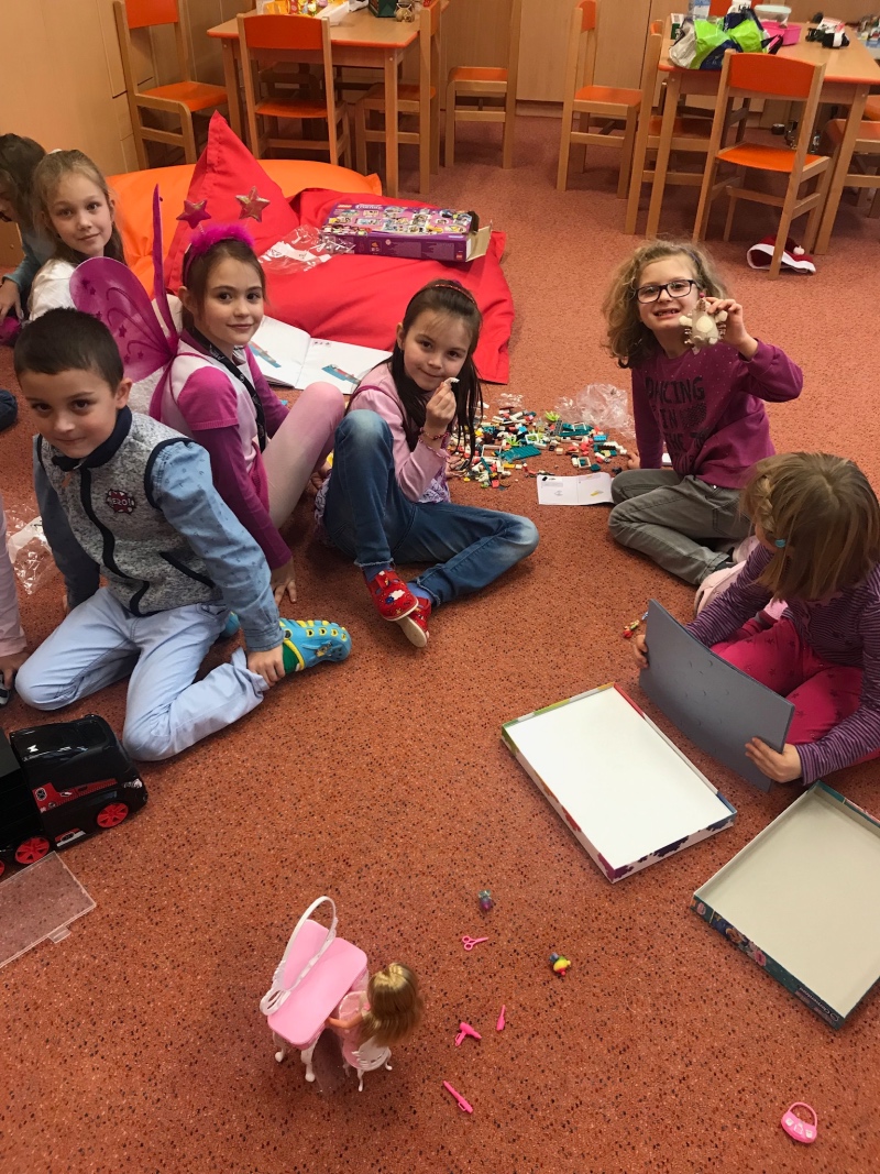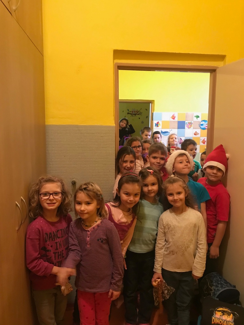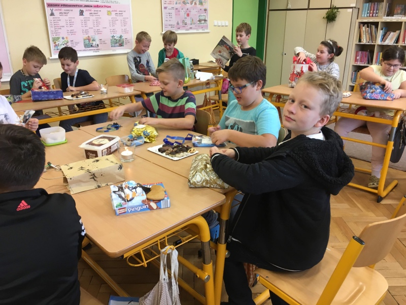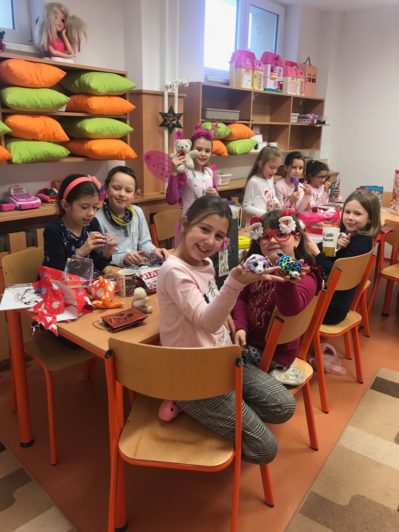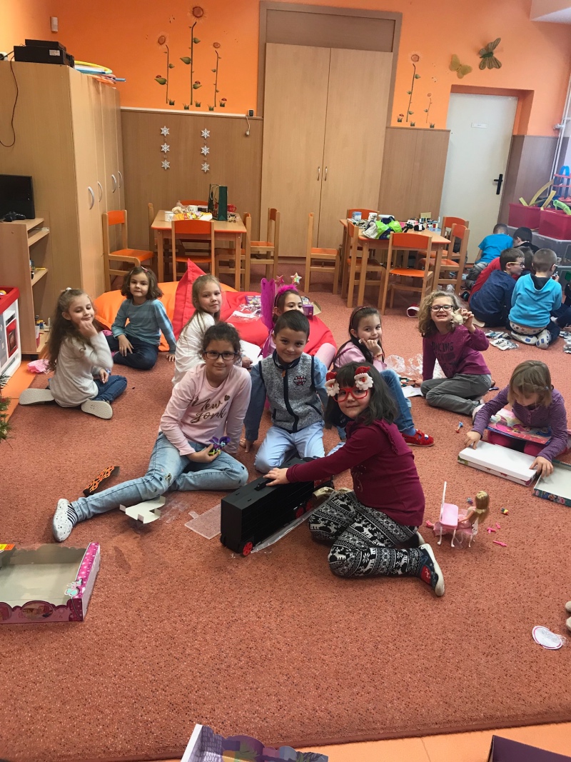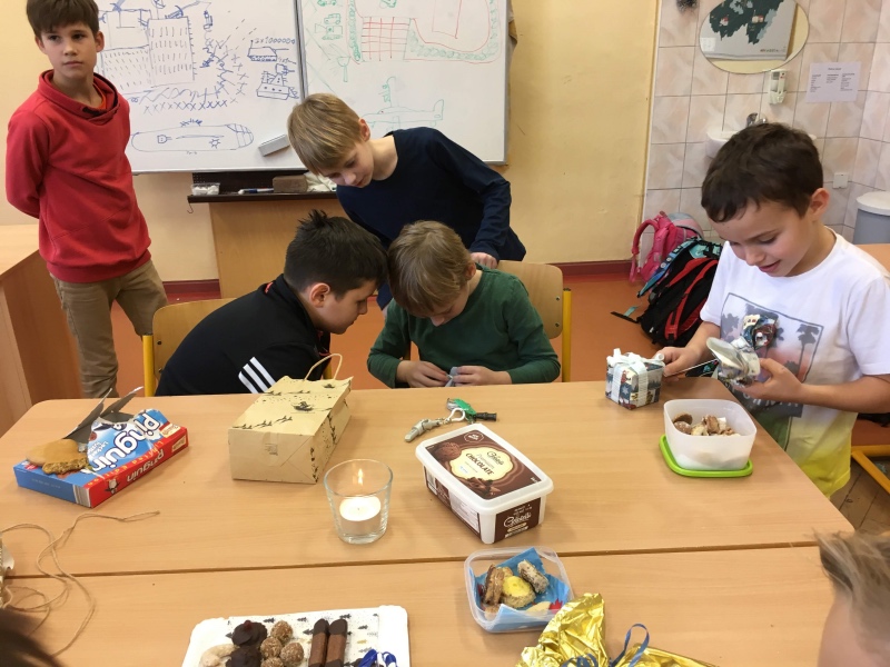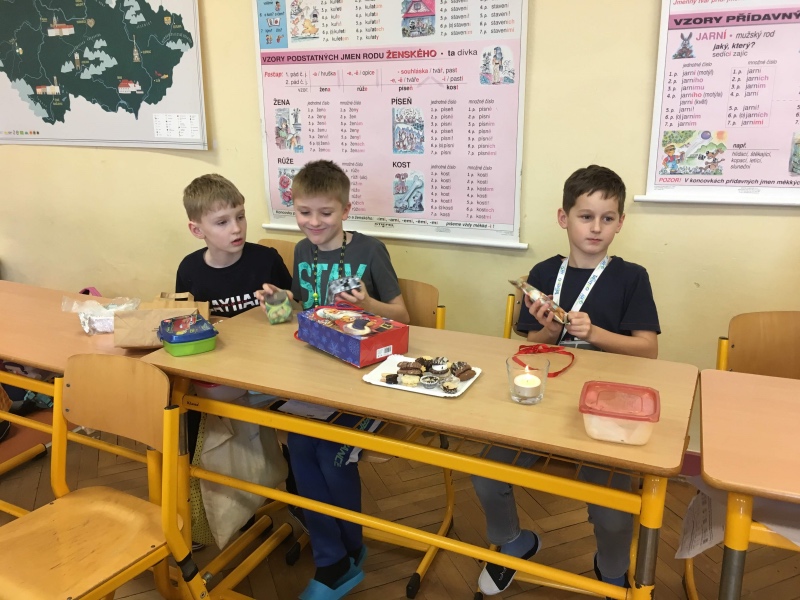 Chlapci a děvčata si mezi sebou vyměnili dárečky a mnoho dárků na ně čekalo pod stromečkem. Zazpívali jsme si koledy, povídali si o vánočních zvycích a ochutnávali jsme navzájem cukroví.